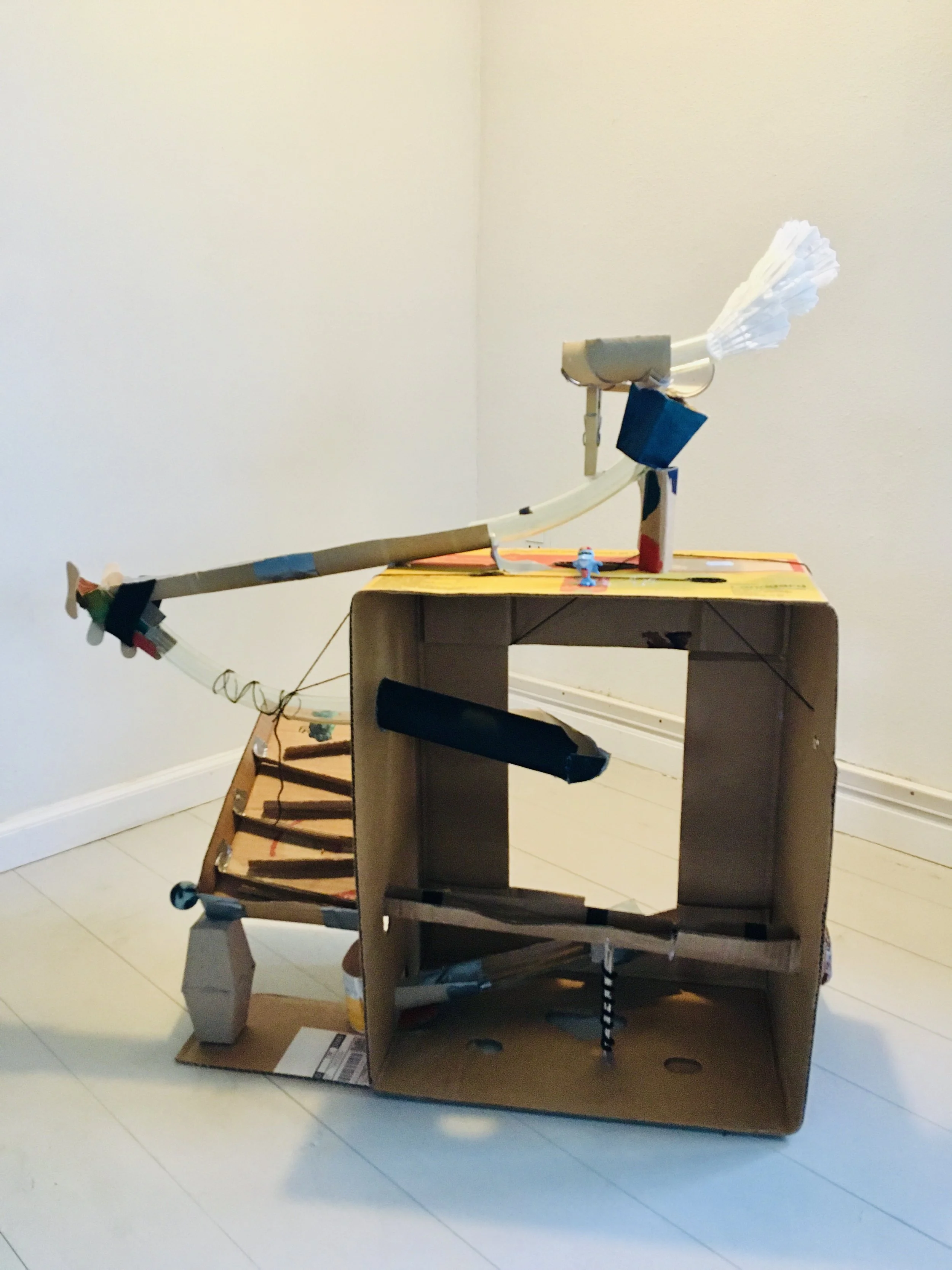 Kunstner Marie Koch Kjærgård står klar med limpistol, materialer, inspiration og gode ideer, når hun hjælper os med at få skabt flotte kuglebaner ud af pap og andre gode genbrugssager. Lav din egen cool kuglebane og se kuglens vej gennem rør og æsker. Vi undersøger hvor meget der skal til for at få kuglen til at trille, uden at det går for hurtigt. Vi laver mekanismer, der bremser og forlænger kuglens forløb. Vi sætter materialer sammen, så det hele bare virker. Medbring kun fantasi og godt humør - og måske en voksen hjælper hvis du er mellem 5-7 år.